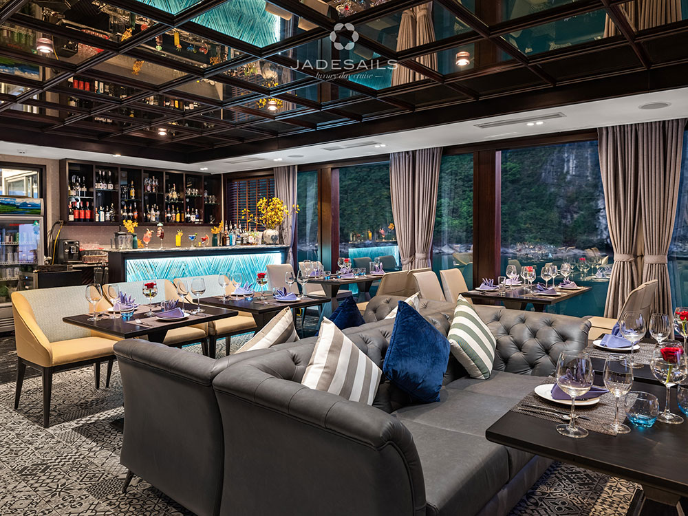 JadeSails is proud to present a new level of contemporary luxury cruising. Our services prioritize safety while providing an unforgettable experience through our carefully planned itinerary, attentive service, authentic decor, and exquisite cuisine. Our sailboat, JadeSails, is a unique and exclusive vessel designed to offer a luxurious open space and seamlessly blend with the natural beauty of Halong Bay. It features elegant and modern interiors such as two restaurants, a lounge bar, a cafe,