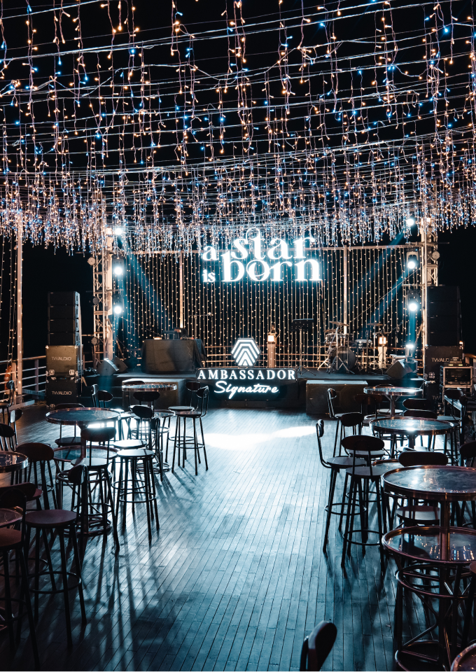 Savor a premium Michelin standard dinner on the sundeck (depends on weather conditions) whilst being serenaded with live band music (the band is off on Mondays).