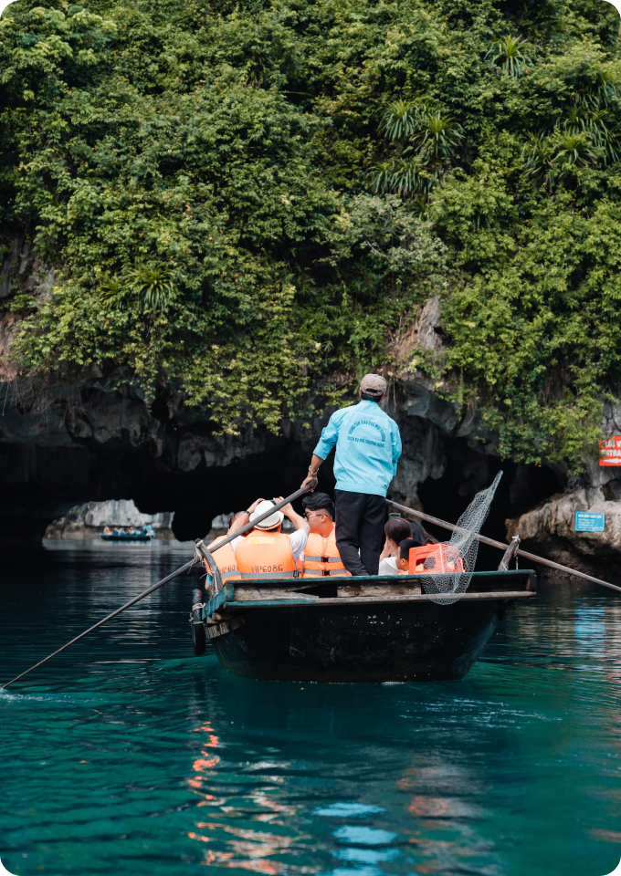 Enjoy a serena bamboo boat ride or kayaking to admire the cave's interior.