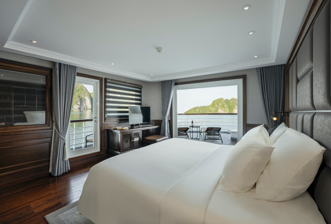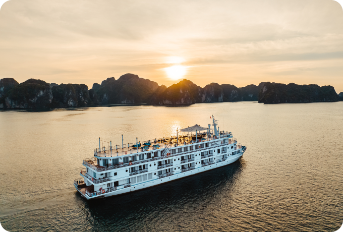 Ambassador Signature features 39 spacious cabins with private balconies, a spa, piano lounge, and sundeck - offering a refined Ha Long Bay experience.