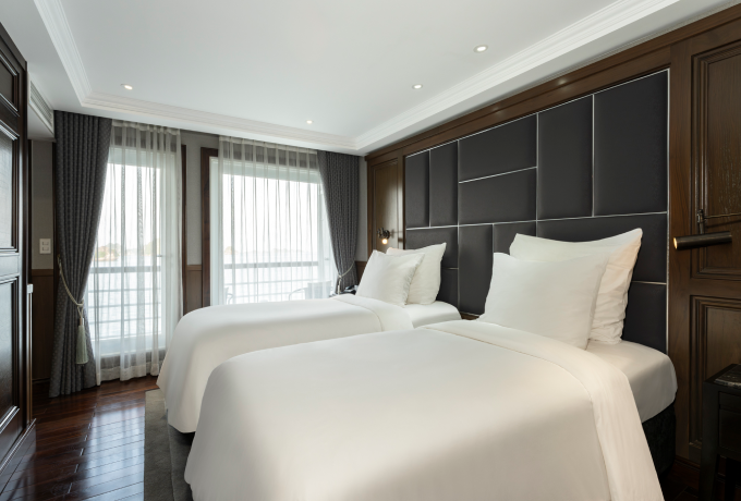 The Ambassador Signature, the latest addition to the Ambassador Cruise Line fleet, complements its Halong Bay sister ships, Ambassador I and Ambassador II. With a mere 39 expansive cabins startinf at 28 sqm, each featuring a balcony and a well-appointed ensuite bath, it offers a luxutious haven. Additionally, the ship boats a spa, a refined piano lounge, and a sundeck adorned with comfortable loungers for your ultimate relaxation.