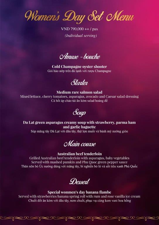 Show your love and respect to the women of your life with a memorable night at OHG’s restaurants. This March 8th, we are delighted to bring you a special set menu crafted by our talented chefs, a lovely live violin performance at O’Lake View restaurant and flowers as gifts for all ladies. Join us to celebrate this Women’s Day in an unforgettable way.
