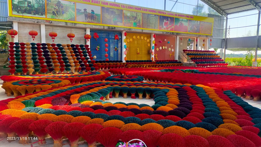 10h00: Arrive center of the village. Take a walk to see how locals make incense on the artisanal, family scale. Meet a family who specializes in dyeing incense sticks and take in the colorful bundles of incense.