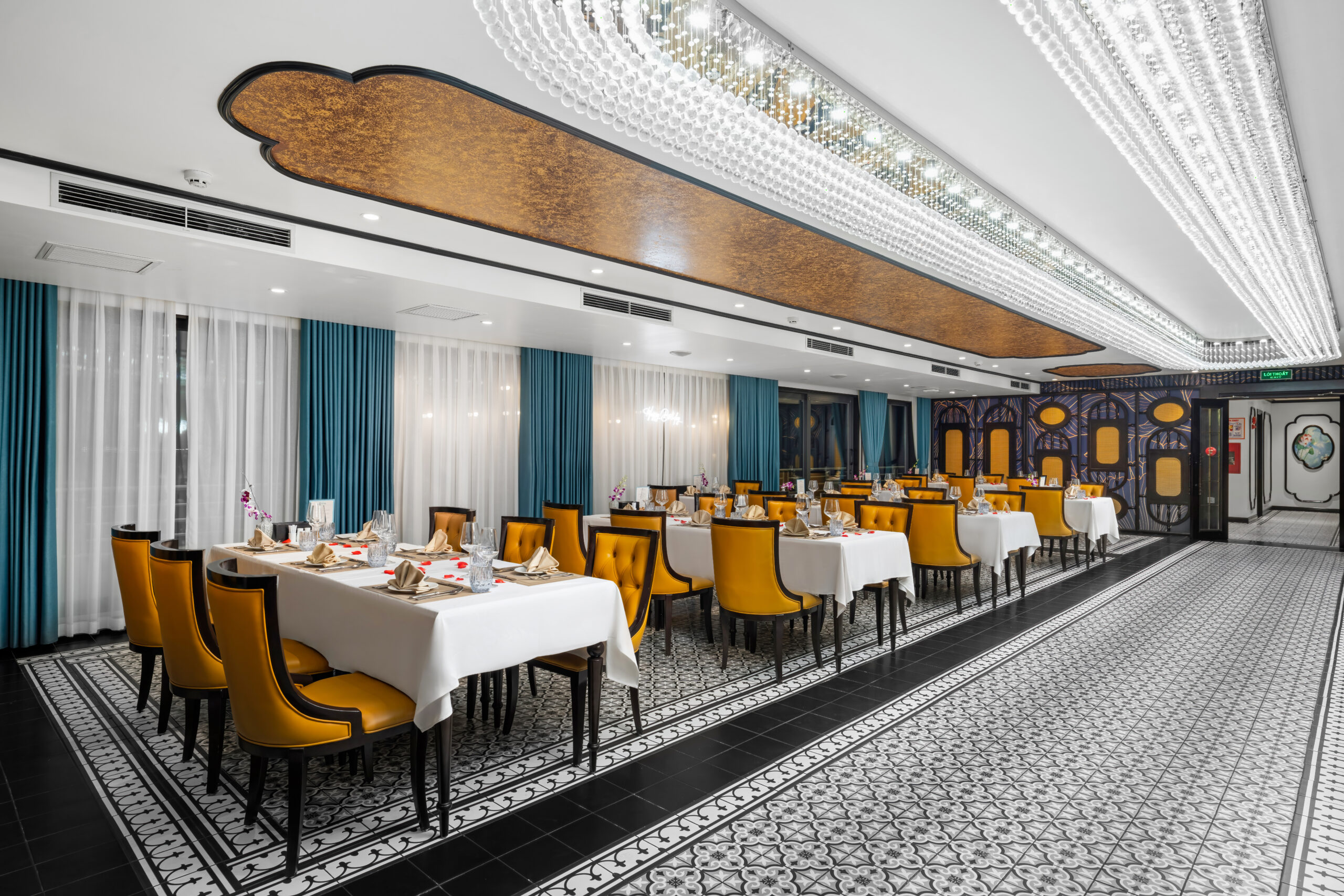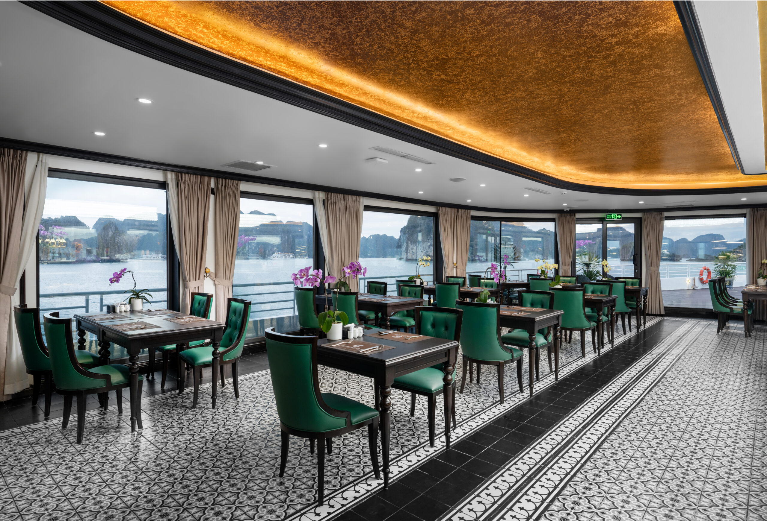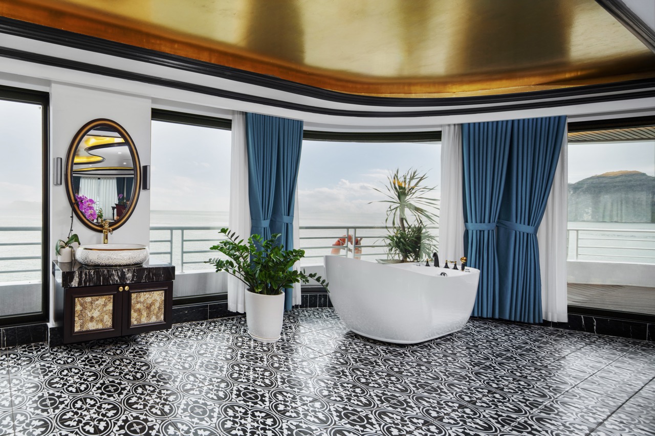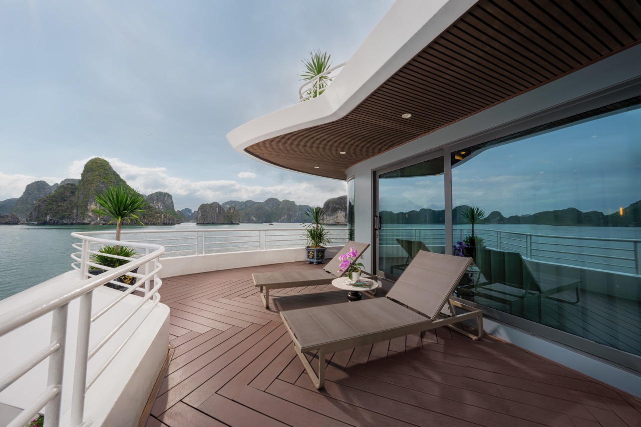Catherine Cruise is a luxury Indochine-style vessel, designed as a floating 5-star resort amid the emerald waters of Halong Bay. Officially launched in June 2023, the cruise is among the pioneers in adopting modern, eco-friendly technology, reducing emissions, and replacing plastic bottles with sustainable materials.
