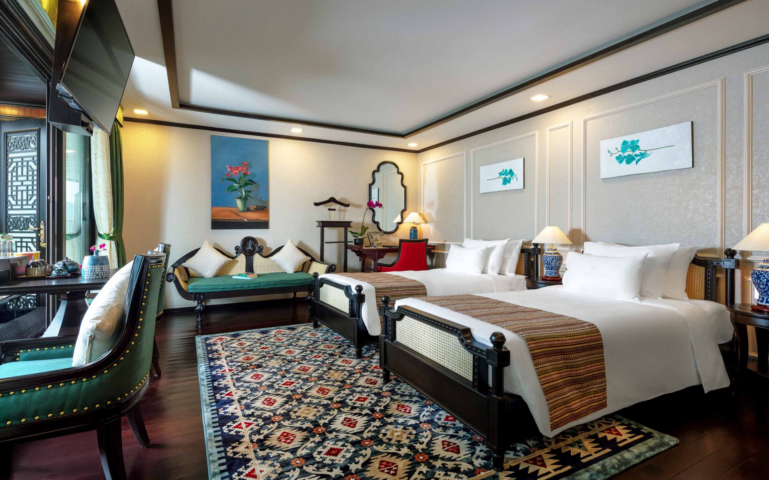 Orchid Premium is a luxury cruise that showcases the timeless beauty of Indochine architecture, artfully blending Asian tradition with the romance of French elegance. With only 5 ultra-spacious suites featuring private balconies and bathtubs overlooking the bay, along with 24/7 private butler service, Orchid Premium promises an exclusive and indulgent stay for discernin