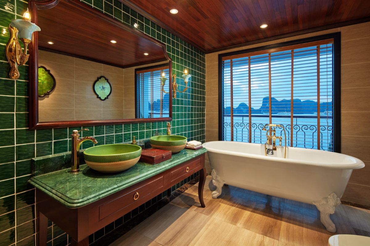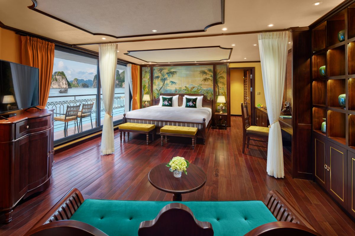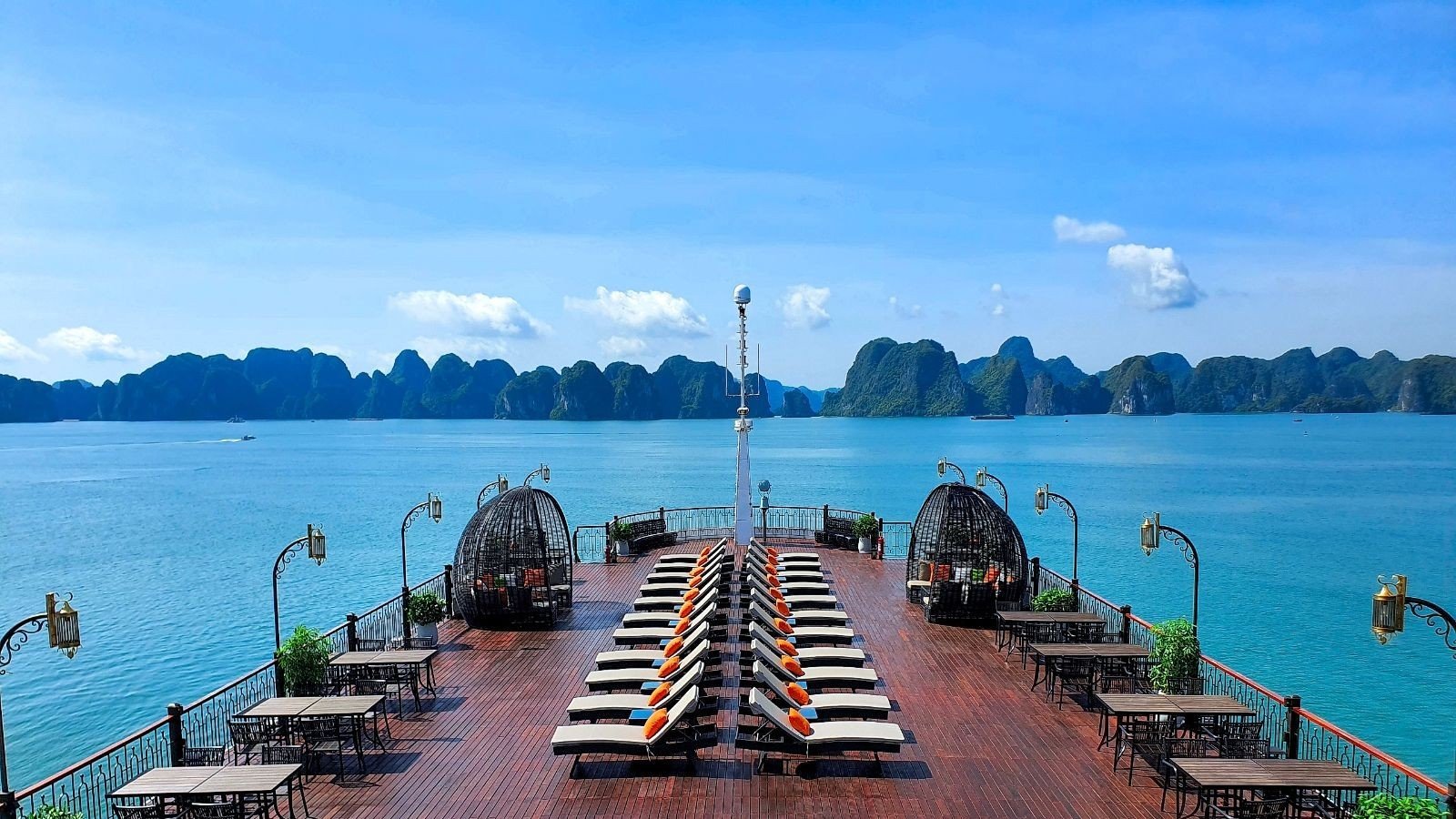 Indochine Premium offers a luxurious all-inclusive cruise with 37 balcony cabins, a 1,100 m² sundeck, pool, mini-golf, and elegant Sky Lounge—perfect for a refined Ha Long Bay escape.